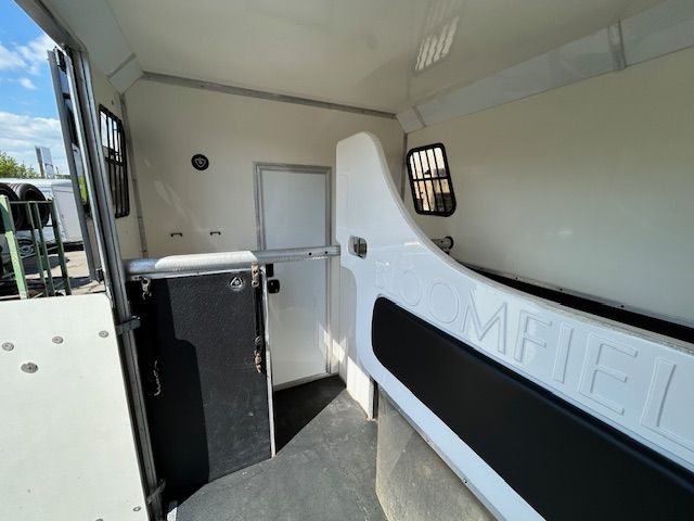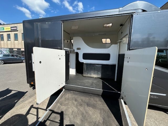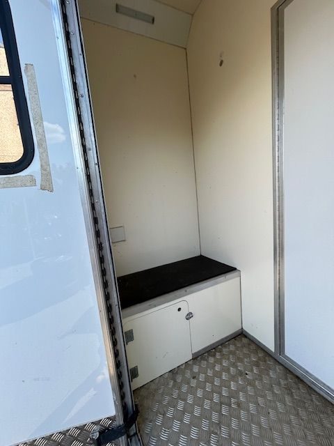 Sitzbänke in der Sattelkammer rechts und links mit eingebauten Staufächern